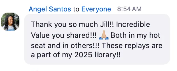 This isn't a one-way interaction. Your hot seat is designed to be back-and-forth, responsive, and tailored to you. We go as deep as we can in the time we have, and I meet you where you are with clarity, directness, and support. This is real-time work, not a lecture.